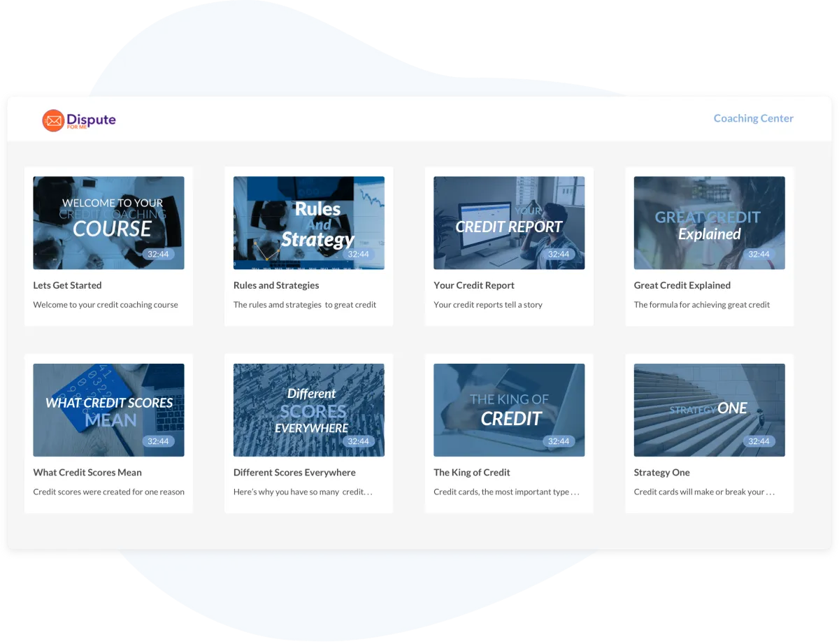 Want to know the fastest way to improve your credit and increase your score? Dispute For Me team of credit experts have got you covered. The video coaching course will show you exactly what to do and provide answers if you have questions.
